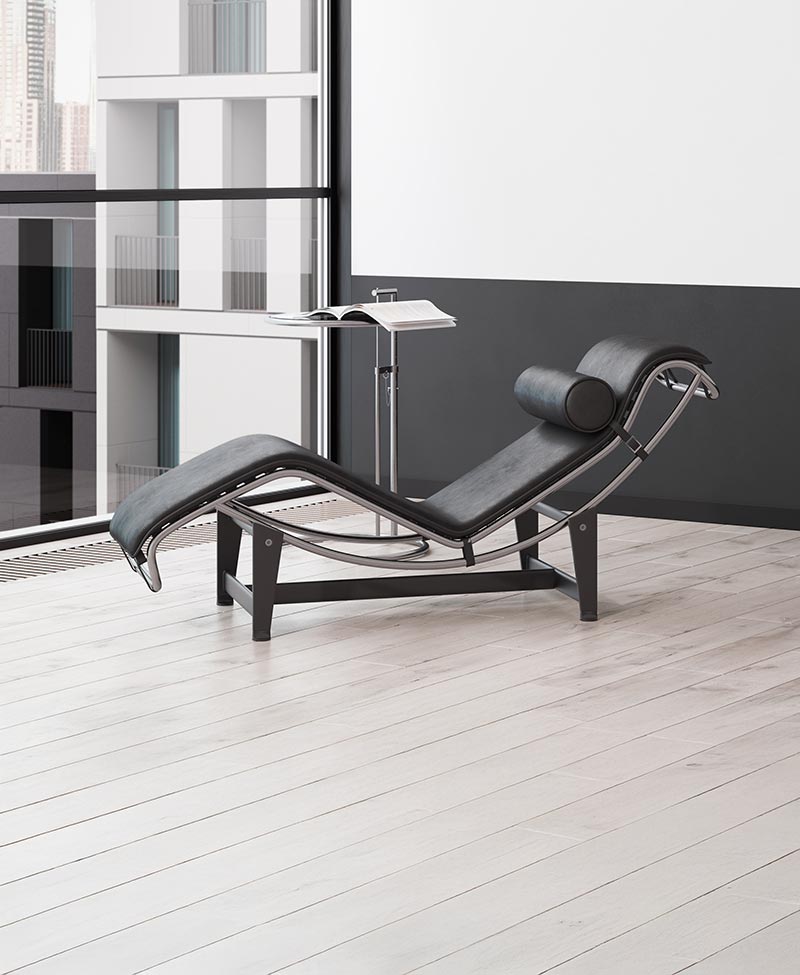 Diseñada en 1928 por Le Corbusier, Pierre Jeanneret y Charlotte Perriand, la LC4 es un ícono del diseño moderno, pensada para ofrecer el máximo confort en una postura de descanso.